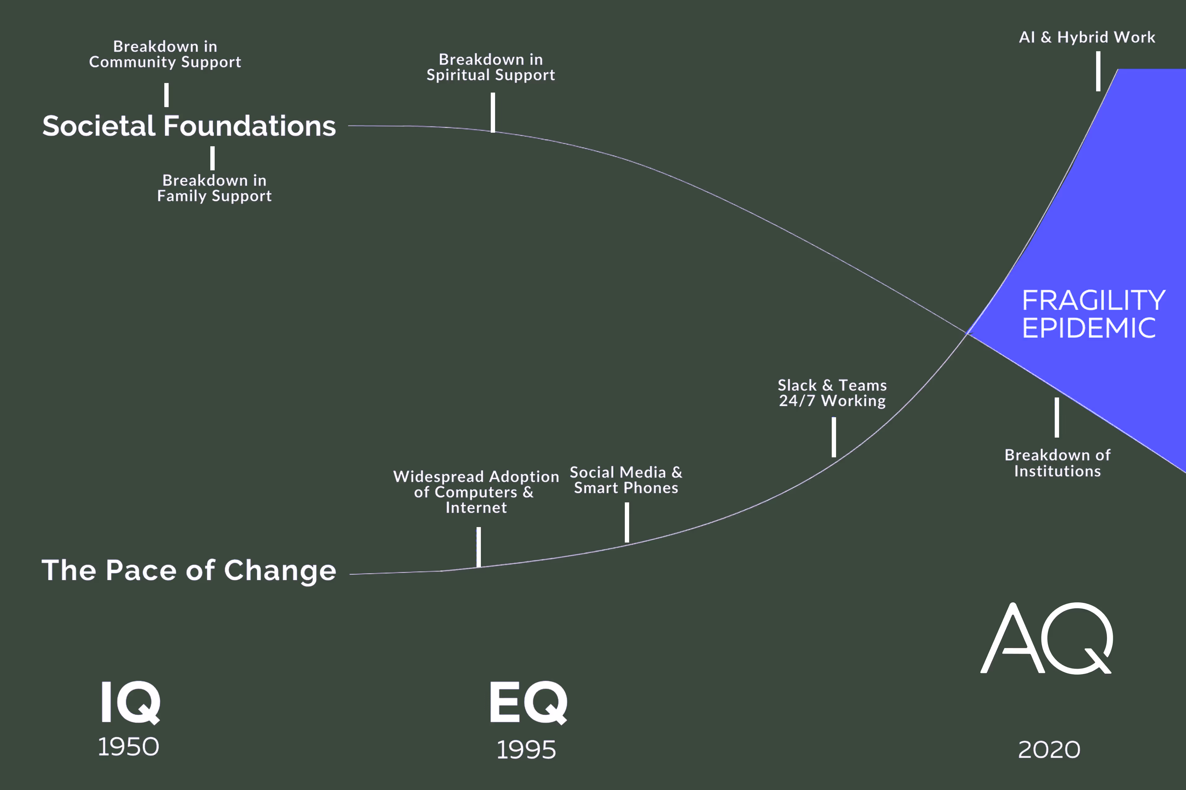 So, despite working more hours and having the entirety of human knowledge at our disposal, an overwhelming sense of looming failure has enveloped individuals and organizations alike.